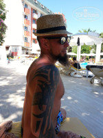 Хороший отель. Отдыхали с друзьями в конце июня-начале июля 2015. Прибыли под вечер, поэтому проблем с размещением быть и не могло наверное. Нам с моей девушкой дали номер на втором этаже с видом на соседний отель. Номер маленький - только чтоб поместились кровать, шкаф, тумбочка, холодильник и маленький стол. Все чисто и аккуратно. Кондиционер с пультом позволял ночами сквозь сон думать что ты в Питере, тем усиливая радость от того, что просыпаешься все-таки в Турции. Санузел тоже аккуратный и опрятный, с феном, правда при принятии душа вода натечет на пол неизбежно. Уборку делали каждый день, а если оставлять чаевые, горничные проявляют творческий подход.