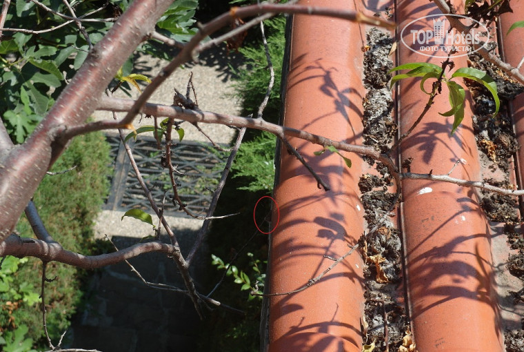 В перший день речі розкладати по шафах та тумбочках часу особливо не було, тому кульок з печивом, котре ми брали в дорогу, залишився стояти на підлозі. Яке ж було наше здивування, коли на другий день зранку ми помітили дірку в кульку (фото додаю) та погризене печиво! Балкон на ніч ми не закривали, бо любимо свіже повітря, а ніч була дуже тепла, приємно було чути шум морського прибою. Крім того, вікна чи квартирки в номері немає. Кульок з печивом ми сховали в шафу на верхню поличку, і на другу ніч спокійно лягли спати з відкритим балконом. Посеред ночі я раптово прокинулась від того, що якісь тоненькі гострі зуби стискають мій вказівний палець!.. Я почала кричати: «Миша! Миша!» і перескочила на половину ліжка чоловіка. Він прокинувся, зістрибнув з ліжка, побіг на балкон і ще встиг побачити величенького щура з довгим хвостом, який втікав. Очевидно, щур в пошуках чогось їстівного заліз на тумбочку коло ліжка, над якою звисала моя рука. Потім ми з’ясували, що щур живе (або ж частенько буває) під дахом номеру, що знаходився під нами. Оскільки цей номер був на першому поверсі, а ми – на другому, то дах першого поверху був на одному рівні з нашим балконом. Пізніше мій чоловік ще двічі бачив щура, який виглядав з-під даху і навіть пробував сфотографувати його мордочку (фото додаю). Також щура бачив наш сусід по балкону – поляк, який часто любив курити на балконі. Звичайно, що ми звернулися до адміністратора рецепції з цією проблемою – старшої жінки-блондинки в окулярах. Поспілкувавшись з фронт-менеджером, вона безапеляційним і навіть виклично-зухвалим тоном заявила нам, що це – не щур (рус. – крыса), а «сисєл» - болгарська лісова тварина. «Ми не можемо його вбити, тому що наш готель – це еко-готель, - також наголосила вона, - але наш фронт-менеджер сьогодні з самого ранку викликав екологів і вони прокопали прохід, щоб сисєл по ньому пішов геть». «Як прокопали прохід? - здивувалась я. – Він же живе на даху!» «Ну… Зробили прохід» - відкоригувала вона свою побрехеньку. В тому, що це була побрехенька, ми дуже швидко переконались, тому що мій чоловік після цього на даху нижнього балкону знову бачив щура. Також він випадково почув розмову інших гостів готелю, котрі згадували слово «rat» - англійською «щур». Мій чоловік знайшов через телефон в Інтернеті фото сисєла і фото щура, підійшов до тієї адміністраторки рецепції, показав їй дві фотки і сказав, що це – дві великі різниці. Хвіст сисєла пухнастий, як в білки, а він чітко бачив щурячий голий довгий хвіст. Вона не знайшла, що сказати. Звичайно, що враження від цієї історії були дуже неприємні, і надалі ми спали з закритим балконом.