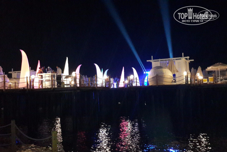Отель находится в поселке. Для меня после Египта, Тайланда, Санья было шоком увидеть такую маленькую территорию. Она реально крошечная. Здание отеля - в его тени бассейн - 5 м - амфитеатр для вечерних шоу - пляж + пантон.
