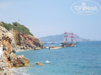 Отель в первую очередь для спокойного отдыха. Расположен вдалеке от других отелей, между п.Конаклы и г.Аланией. Можно поехать в п.Конаклы или Аланию на автобусе. Рядом с отелем пешком сходить некуда.