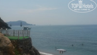 Море находится сразу через дорогу от отеля. Через дорогу сделан надземный переход с лифтами. Пляж достаточно большой, галечный, лежаков хватаем всем. На пляже есть пирс (на котором также стоят лежаки). Пирс делит пляж как бы на 2 части. Слева от пирса вход в море лучше, через несколько шагов глубоко, справа от пирса в море находится плита природного происхождения, поэтому там мелко. В море водятся морские большие черепахи, поэтому берите с собой маску для плавания.