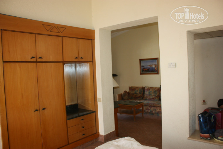 РАЗМЕЩЕНИЕ 4,5 БАЛА: В отеле из отдыхающих только Русские и немного Арабов поэтому поселили нас сразу в хороший номер 204. Это номер посередине между морем и ресепшном со столовой. Очень удобно. Номер огромный, студия, две комнаты, два кондиционера, два балкона, огромная кровать, огромная ванная комната. Хотя отель большой, не факт, что всем везет, но за размещения ставлю 4.