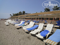 Нормальный пляж. Чистый. Песок до воды. Потом галька. Вода тёплая и чистая. Пару дней штормило и вода была мутная. На фото видно. Потом опять была чистая.С лежаками были проблемы первые три дня. Потом нехватчики, граждане украины, а их было много, уехали и лежаки свободные были всегда! и на пляже и у бассейна. Смотри фото. Охрана жёстко гоняет всех чужих. Бич бой постоянно ходит мусор убирает.