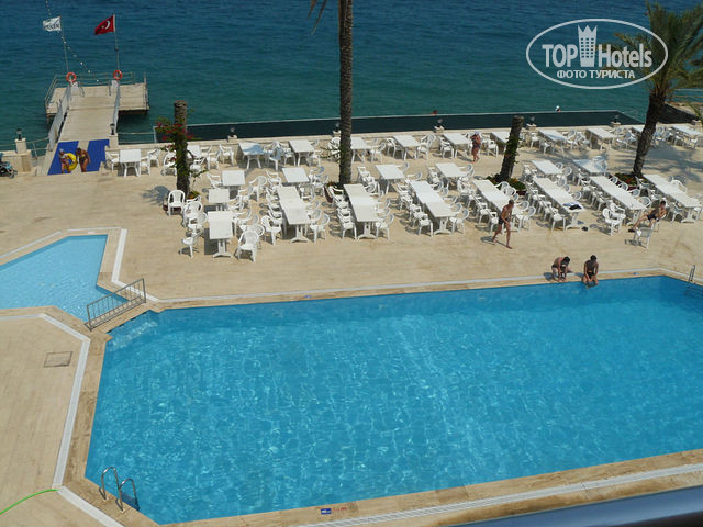 Мне отель понравился- ухоженная зеленая территория,наличие водных горок и самое главное вид на море, большинство номеров с видом на море! ...из минусов- старая покрашенная мебель(на которую мы не обращали внимание) и короткая пляжная линия, но если хочется большего горизонта нужно пройти от отеля 2 или 3 отеля и будет городской пляж,где можно гулять по берегу. Анимация разнообразная, аквааэробика и восточные танцы ежедневно. Настоящая четверка. Питание соответствует 4 звездам,для меня был даже переизбыток пищу, так как мы едим ,чтобы жить, а не живем,чтобы есть.Удивляли некоторые люди,которые с утра до ночи ели,ели,ели,но это их право и их дело,может булемия:)))