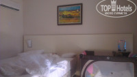 Отдыхали семьёй с 25.08.15 по 31.08.15 муж, я и ребенок год и 11 месяцев, были немного ограничены в средствах поэтому выбирали не сильно дорогой отель, посоветовали этот нам отель знакомые. Тур оператор БРИСКО был, отличные ребята, отзывчивые и ненавязчивые с экскурсиями)) дорога до отеля заняла 1,5 часа пока всех развезли по отелям(наш Vera SeaGate был последний) +плюс 1,5 часа в аэропорте прождали двух клуш которые так и не пришли в автобус и даже не предупредили. Приехали в отель поздно, намучившиеся дорогой и ожиданием, попросили тихий номер и детскую кроватку, на ресепшене турки хорошо понимают по русски, мы пришли в номер и оказалось, что он на первом этаже окнами на дорогу, по которой въезжают в отель автобусы и две кровати, которые мы сдвинули, оказались разного уровня, захотели поменять, начали объяснять почему, турок знает конечно русский, но про уровни кроватей не понял)) позвал Мишу, это парень у которого магазинчик кожи при отеле, он отлично знает русский и все наши проблемы с переводом были решены)) Кстати номера делятся на два варианта вида из окна, это на дорогу где автобусы въезжают в отель(они реально тихие) и номера с видом на соседние номера отеля Кристал Crystal Waterworld Resort, который был в 10 метрах и в котором каждый день и вечер дубасила клубная музыка. В номерах прям над кроватями кондиционер, ночью без него свариться можно и вот представьте лежите вы такой на кровати и вас обдувает холодным воздухом и через 5 мин сопли, в общем сдвинули мы кровати прям к стенке под кондей и он уже не так дул, на фото видно нашу перестановку,я боялась что ребенка продует и положила к самой стенке, детская кроватка была манежем. Комната номера маленькая, ванна хорошая, чистая, периодически промазывают белой замазкой стык ванны с плиткой. Номера не новые, но приличные, всё работает исправно.