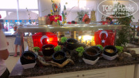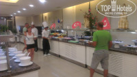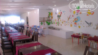 Ресторан главный отличный, есть детские столики и стульчики, детское меню, всегда отварное мясо и гарнир, еды предостаточно, есть всё, и всё вкусное, повара стараются,постоянно разные блюда, готовят блюдо, потом стоят с ним на раздаче, официанты все очень любезные и приветливые, да в Турции весь персонал такой, очень приятные и милые люди! единственные кто нас разочаровал - это горничные, забрали из номера грязные полотенца, а чистые не положили, 4 раза в течении дня мы ходили на ресепшен и просили о полотенцах, при нас служащий звонил уборщице и говорил что сейчас принесут, но она по ходу забывала постоянно об этом, в итоге только после ужина мы увидели 2 комплекта чистых полотенец на троих, без полотенца под ноги. Кстати в отеле чистейшие белоснежные полотенца и постель))