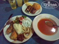 Спустились к бару у бассейна.стали в очередь ,что б получить свои сандвичи. К ним решили взять красное вино. После пары глотков поняли,что вино исключается из списка напитков,которые мы будем пить! Попробовав в течение ближайших дней белое вино, пиво, узо и джин мы поняли,что из алкоголя можно пить только пиво. Пиво действительно было похоже на пиво)