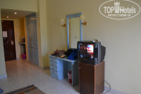 ЗАСЕЛЕНИЕ: приехали в отель около 8 утра, нам сказали что браслеты оденут в 12:00, а заселение будет в 13:00, чего мы и ожидали и об этом нас предупредил туроператор, поэтому чтобы не сидеть на ресепшене 4 часа мы переоделись и пошли на пляж. На стойке написано что за номер на 2 этаже нужно доплачивать, но нас заселили на 2 этаж с видом на море без каких-либо доплат, багаж довезли, в номер проводили. Номер чистый, ничего не воняло, не протекало, все работало, насекомых не было, убирались каждый день (минусы: холодильник, или как его называют мини-бар плохо холодил, но впринципе мы там продукты не хранили, так что нам было все равно; гель для душа и шампунь дали только в первый день). Фена в номере нет, с полотенцами все в порядке, мебель не новая, но в хорошем состоянии, кондиционер работал отлично, не шумно.
