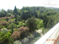 Красивая, все очень мило, уютно, дорожки, пальмы, зелень, много зелени, цветов мало. Зоопарк, там козлы, медведь, олени, кролики. Бедные животные, все. Такая грязь, антисанитария, противно смотреть, а зайчики в этом живут, так жалко. Всего лишь 4 кроличка. Неужели нельзя открыть клетку, и вымести ее, прибрать, они сами в таком бы жили. Фу. Вид с окна очень красивый, на море. Все красиво кругом. НО!!! Все такое брошенное, не ухоженное, типа растет само, и ладно, абхазы этой шикарной природой пользоваться не умеют. За садом же следить надо, а у них не обихожено, бестолковое использование роскошных природных ресурсов. По дорожке есть проход в соседний отель Литфонд. Мы туда свободно ходили гулять. Этот проход я назвала «Страшный лес». Реально как из сказки про Бабу-Ягу.