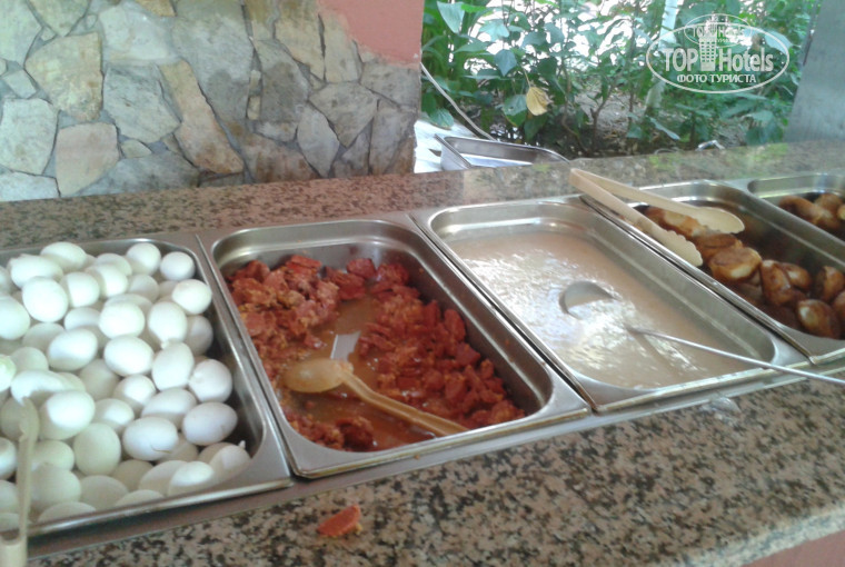 Утром новый шок произвела столовая - с ее грязными скатертями (если так можно назвать простой кусок бязи, при этом весь в пятная от пищи) и бесконечные очереди за всем-за чаем, кофе (это все в кофе-машине), ежедневным однообразным завтраком, состоящим из вареных яиц, не понятных колбасок (сплошная соя), молочного киселя и булочек. Народ, как сумасшедший носился с тарелками, чтобы успеть набрать сыр (типа "адыгейского"), слив. масло, творог, йогурт, зелень разную и овощи, на сладкое-только джемы, видов 5-6. Я не могла понять-зачем все так бегают, спешат, потом стало понятно-Отель переполнен (причем молодежи не много, в основном люди пожилого возраста) и на всех еды просто не хватало!