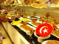 Питание. На завтрак стандартный набор:яйца во всех видах,хлопья,сыры,колбасы и булки булки булки)) в обед два овощных супа ну и разные гарниры,салаты и мясо. Вечером в принципе такой же набор,еще на улице делают какой нибудь гриль,также напитки за ужином приносят официанты,хотя я видела что и днем их просили они не отказывали.Есть небольшой диетический стол,на мой взгляд ребенка можно вполне накормить. Ну и разные сладости,фрукты. Есть детские стулья и пласмассовые тарелочки с зайками) Мороженное дают с16 до17 в ресторане,у нас очередей вообще Не было,также там можно взять булочки и сладости чтобы попить чай,например.