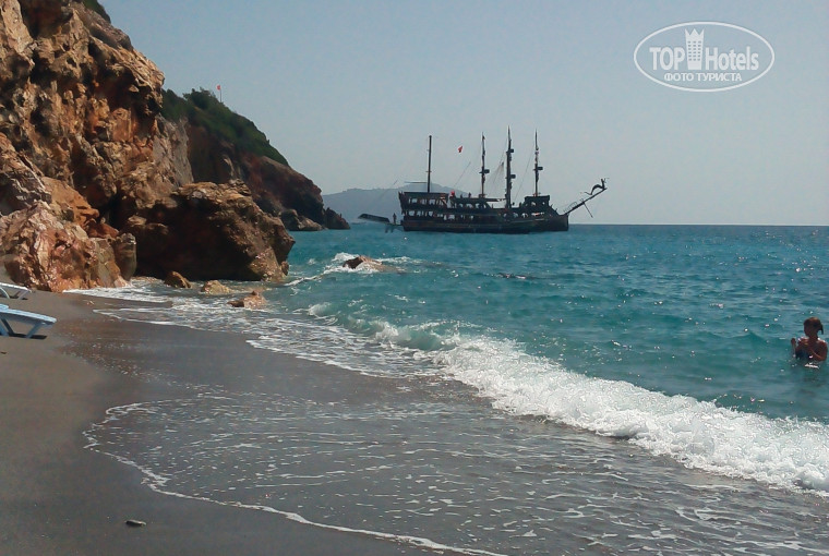 Минусы это кухня. Если вы гурманы, хотите вкусно. разнообразно поесть вам не сюда.Как пишут в отзывах, голодными не ходили, но и удовольствия от принятия пищи нет. В ассортименте овощи(помидоры, огурцы, перец), иногда зелень, какие то странные пасты, слипшиеся макароны,иногда картофель фри, а в основном рис. Из мяса Ничего. иногда курица. рыба. Но почему то все очень пережаренное.Был сладкий стол, так себе. На завтрак кроме вареных яиц, сыра и соевой колбасы . почти ничего. Самое вкусное это хлеб. Фруктов нет, только арбузы. Конечно наливают везде и почти целый день, но все в пластиковых 100 гр стаканчиках. Мы решили поехать подешевле, побольше быть на выезде. Через день старались куда то выехать. Удачное расположение отеля 5 км поселок Конаклы, 5 км в другую сторону г Аланья. Были на базаре в Конаклы он там по средам, в Аланье базар по пятницам. В Конаклы очень большой выбор фруктов и дешевле .Попробовали красный гранат без косточек вкуснятина.Надо торговаться. Спрашиваешь 1кг. а берешь 2кг и разных фруктов и в два раза дешевле,брали персики Очень вкусные и сладкие Ездили в Аланью на пляж Клеопатры, чистый мелкий песочек! Заказывали через интернет экскурсии рекомендую. Девушка русскоговорящая. их офис в Аланьи, все четко, без обмана, посоветует куда и что. Предоплата 10 % на карту остальное по приезду. Были на экскурсии Грин каньон красота!рекомендую.
