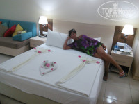 Итак по отелю: территория шикарная. Единственное, прошлой зимой очевидно морозы не обошли и солнечную Турцию и в отеле банановые пальмы слегка примёрзли и так и не отошли. В остальном замечаний никаких. Номера хорошие, мебель не уставшая, уборка и пополнение мини-бара устраивало. Анимация супер!!! Были заезжие коллективы африканские акробаты, бразильская сальса и капуэйро..., отельная анимация- старались ребята изо всех сил!!! Старший аниматор Мемет наглотался огня, развлекая нас вдоволь. Зачёт!!! Дорога к морю- автобус ходит исправно, мы прогуливались пешочком. Пляж и море отличные, превосходные, очаровальные и т.д.!!! Бич-бой Али следит за пляжем старательно. Бар на пляже хороший! Отдельный привет старшему бармэну Джемалю!!! Широкой души человек! Хамам в отеле достойный, администратор грузинская девушка Нана, приятнейший человек! Единственное в чём мы заметили изменения, так это в питании. Поменялся шеф-повар и чуть-чуть изменилась кухня. Нет, она не стала хуже, она просто немного стала другой. Если в прошлом году в основном ресторане нам на ужин жарили на вертеле целиком барашка или тунца, то в этом году заработали рестораны аля-карт (турецкий, мексиканский, тайский и рыбный был в перспективе). В прошлом на полдник были вкуснейшие "венские вафли" с арахисовым маслом, в этом году- немерянно разного мороженого и т.д. Шеф-повар пристально следит за своим хозяйством, постоянно находится в зале ресторана и корректирует работу поварского состава. Пламенный привет в ресторане администратору зала, су-шефу Джемалю и конечно же нашему любимому официанту Сердару!!! Вообще весь обслуживающий персонал отеля старается сделать Ваш отдых максимально комфортным. В этом году стали заметно больше прислушиваться к мнению отдыхающих, анкетки там всякие, опросники и т.д. Это даёт надежду что "Сиделья Клаб..." и дальше будет рости и процветать!!! Отель за год стал лучше и стабильно держит курс на развитие!!! До встречи в мае!!! Обязательно вернёмся!!!