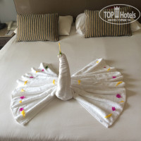 НОМЕР двухкомнатный - 6033, на первом этаже, никаких насекомых к нам не заползало, шум с детского бассейна не мешал, все было чисто, красиво, мебель почти как новая, очень удобная большая кровать, кресло, стул, напротив ванной большой шкаф купе. На балконе два стула и столик. Все можно увидеть на фото. Несколько раз оставляли доллар, нам делали лебедей, слоника, а как-то ничего не делали, но все равно хорошо убирали. Постельное меняли не каждый день, один раз я сама попросила поменять и там есть табличка на тумбе, которую можно положить на кровать и белье обязаны сменить. С полотенцами никогда проблем не было, нам на двоих их было даже много, учитывая, что пляжные полотенца ты берешь на улице. В номере был чайный набор, 1,5 литра воды в день. Была проблема с кондиционером, которую мы заметили на 3-й день, после обращения на ресепшн, в течении часа все сделали.