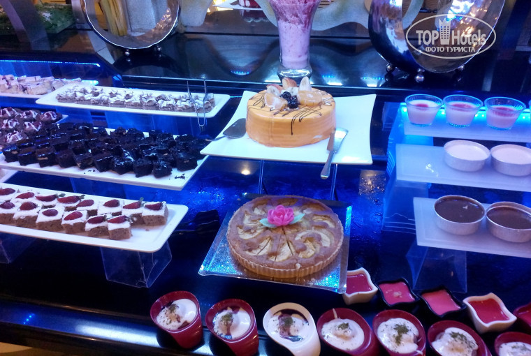 Питание превосходное! Практически каждый вечер- тематический. Изобилие блюд из мяса, рыбы, индейки, иногда морепродукты, множество вкуснячих сладостей, фруктов, мороженое в течение всего дня, фреш на завтрак бесплатно, соки: персиковый, яблочный, вишневый, ананасовый, томатный.Шеф-повару и менеджеру ресторана- благодарность.