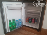 В мини баре: пиво, спрайт, фанта, кола, газированная вода. Все это бесплатно и пополняется ежедневно.