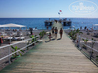 Далее зона 15+. Потом общая зона и детская часть. Еще было немного лежаков на одном из 2 пирсов. За детской зоной находится точка продажи водного спорта (банан, диван, водные мотоциклы, парасейлинг, при желании можно взять катер или индивидуальную яхту покататься). Несмотря на конец сезона, заселенность отеля была 100% и в 9 утра все лежаки уже были забронированы полотенцами, хотя могли и оставаться пустыми до вечера. Просьба к администрации отеля подумать, как решить этот вопрос. Так же дела обстоят с лежаками возле релакс бассейна. Но возле основного бассейна их более чем достаточно. Поэтому часто там и лежали, и просто ходили в море, поскольку вода в море была значительно теплее (+28).