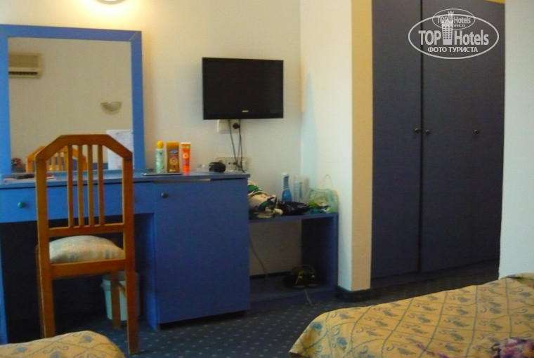Отдыхала в отеле с 23.09.15 по 30.09.15. Отель выбирала по отзывам, так что имела представление о плюсах и минусах. Прилетела рано утром,сразу были приглашены к завтраку ,чемодан остался в холле. Заселение было в 13.30.(до этого можно уже быть спокойно на пляже). Номер на 4 этаже, мебель не новая, но приятного синего цвета. Очень большой балкон ,солнечная сторона. Всё работало, только в бра у кроватей не было одной лампочки.
