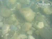 На пляже лежаки лучше занять пораньше, море чистое, вход камни ,но пару шагов можно пройти, обошлась без тапочек. Но надо быть осторожной на глубине. Я сильно порезала пятку(хорошо хоть в конце отдыха). Там камни ,из них торчит труба (как теперь понимаю, раньше был понтон и это осталось от его крепления). Таких раненых ,как я ,видела несколько человек.