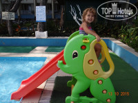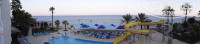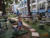 -Территория. Общая на 2 отеля,У Рамы более зеленая,тенистая,везде декор металлический. У Пекера более солнечная,просторная. Всего 2 взрослых и 2 детских бассейна,взрослая горка по расписанию,2 детских горки. Детская площадка маленькая,с лавочкой и освещением в вечернее время. Столовая крытая и под открытым небом. Лучшие места за столиками прямо вдоль моря! Есть 2 бара,один из которых пулбар(часть мест за стойкой в бассейне)
