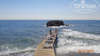 Пляж: Пляж замечательный. Хочешь купайся справа от пирса , там дно – природная плита и неглубоко, можно попрыгать на волнах, хочешь слева – мелкая галька и комфортная глубина. Проблем с лежаками, матрасами и зонтиками не было – хватало всем. Только полотенца для пляжа нужны свои.