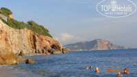 Территория: Территория отеля маленькая, но можно съездить в Аланию или Конаклы, пройтись по окрестностям. Если пойти пешком в сторону Конаклы, то всего через 15 минут, за горой, вам откроется комплекс отелей, с красивыми пляжами, с лавочками, с обменным пунктом, с базаром (промышленным). Чуть дальше по ходу есть три маркета, где можно купить постельное белье, трикотаж, сувениры, вкусности, фрукты, спиртное и продукты. А если пройтись в сторону Аланьи – так городская зона отдыха, красивый турецкий ресторанчик на берегу моря. Кстати, гуляли совершенно спокойно и в светлое время суток, и в темное.