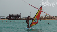 2. В отеле реально 1 час в день (на комнату) можно бесплатно кататься на виндсерфинге. Один час много. Нам с дочкой хватало минут по 20. :о)) Но есть тут хитрость – если ранее не катались, то надо взять инструктора. Без него научиться практически невозможно. Я брал 1 час за $20. После этого уже пытался сам.