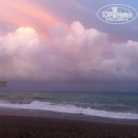 Пляж-галечный,чистый,с хорошими лежаками. На пляже есть собственная пиццерия с очень вкусной пиццей и бар с различными напитками и мороженным.