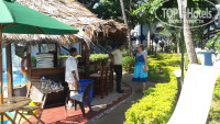 Территория у отеля ОЧЕНЬ приятная. Много зелени. Можно смело сказать, утопает в зелени. Каждый клочок земли обработан и что-то на нем посажено, будь то пальмы или какие-то маленькие цветочки. Дорожка на пляж проходит по территории и так приятно идти в тени деревьев. 9 садовников стараются с утра до вечера. Рыхлят, пропалывают, поливают, сажают. Проходишь мимо, они улыбаются своими открытыми и добродушными улыбками, здороваются на русском, английском или хинди. Чувствуешь себя долгожданным и желанным гостем. На территории два небольших бассейна. У каждого свой бар. Один, возле ресторана, называется Olegario's. Ни в одном из баров мы не были. Один бассейн возле ресторана, а другой, побольше, возле нашего номера. Купались там один раз, когда в море были сильные волны. Есть в отеле ресторан, в котором мы завтракали. А вечером там ужинали 3 раза. 2 раза там были вечера сизлера, а один раз вечер барбекю. Сизлер состоит как бы из трех блюд. Жаренный картофель, нудлы (макароны) или рис (вы можете выбрать) - это гарниры. Основной составляющей может быть: курица, креветки, овощи, рыба. Все это подается "с пылу, с жару" на скворчащей сковородке. Некоторые повара добавляли чеснок для обалденного запаха.