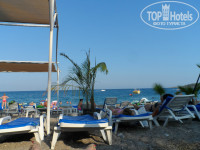 Отдыхали с мужем и дочкой 5 лет в июле 2014 г. Отель нашли по отзывам на Топхотелс. Описание полностью совпадает. Территория небольшая, но вся зеленая, как в дендрарии. Море рядом. Пляж- мельчайшая галька ( из мокрой можно замки строить), т.е. ходить приятно.