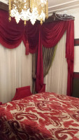 Дизайн гостиницы отсылает нас к временам Оттоманской империи, тёмное дерево, тяжёлые портьеры и золото.