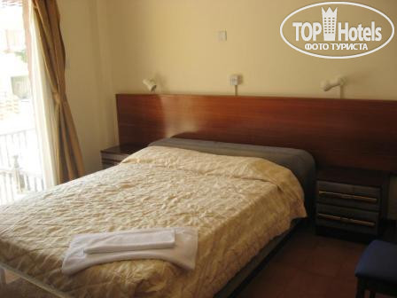 Отель меня очень порадовал, меня поселили в 2-х комнатный 4-х местный номер на первом этаже с большим балконом и кухонным уголком с холодильником. Всё очень чистенько и аккуратно, сантехника исправная, кондиционер включать не пробовала, т.к в мае он совершенно не нужен. Обслуживание в номере тоже устраивало: мусор выносили каждый день, раз в три дня меняли постель и полотенца. На ресепшени очень вежливый персонал, из трёх две женщины говорили на русском. Питание нормальное. На завтраки каждый день стандартный набор: сыр, брынза, ветчина, сосиски, вареные яйца, мюсли, хлопья, хлеб (есть тостер), масло, джем, чай, кофе, лимонад. Ужин в течении недели ни разу не повторился, всегда два салата и четыре горячих блюда, всё очень вкусно. завтраки с 7:30 до 9:30, ужин с 19:30 до 20:30, чем раньше придёте тем лучше. Бассейн замечательный, чистый, большой как мне кажется 10 на 5м., лежаков и зонтов всегда в достатке, плавала всегда одна, народ почему-то предпочитает загарать. Постояльцы в основном все из России. Отель расположен практически у моря, но не возле пляжа, пешком идти минут 15, зато вокруг тишина, и пока идёшь до пляжа можно рассматривать быт двориков киприотов. Гуляла одна в закоулочках среди местного населения, что совершенно безопасно, люди цивилизованные, доброжелательные и открытые.