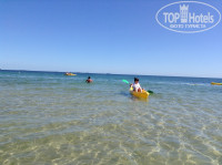 Бассейн и море совсем рядом. Море было еще не очень теплое, Градусов 20-21. Мы купались каждый день. Водоросли есть, но мне не мешали.