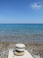 Пляж – галечный, его плюс в том что он находиться рядом с отелем, с идеально чистой водой. Но перемещаться по нему не очень комфортно. В любое время можно было найти свободные шезлонги с матрасами. Пляжные полотенца выдавали в Хамаме под залог.