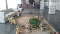 Территория пансионата скучная: 4 корпуса, изредка работающий фонтан, сцена и детская площадка. Все остальное в полуразрушенном состоянии.