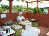 ОТДЫХ В ТУРЦИИ.Весна в этом году выдалась хмурая,дождливая,,холодная,а так уже хотелось тепла.Решили всей семьей сьездить к морю,погреться наслнышке.В этом году выбор пал на Турцию.Долго не думая купили путевки у TRAVEL Office по вполне доступной цене,с нами работала туроператор Renegla внимательная и общительная,все рассказала,помогла с выбором отеля, т.к. в этот раз хотелось не шума а тишины,моря,солнца.Выбор был сделан .Все в дорогу.Вперелете нас обслуживала компания FlyOne.Перелет был не долгим, посадка мягкой.В аэрапорту Анталии нас встретил представитель компании CalipsoTour доброжелательный молодой человек,который нас доставил до отеля,рассказывая в дороге немного о достопримечательностях и обычаях Турции.Время пролетело незаметно и вот мы в отеле Palm World Resort spa SIDE.На рецепшине нас встретили,сразу надели браслеты предложили отдохнуть в холле воспользовавшись услугами бара,пока нам приготовят комнату(единственное неудобство что персонал не знал русского языка,отель ориентирован на немцев.Так,что учите господа второй язык или английский или немецкий если не говорите на турецком)Правда позже нам нашли человека говорившего на русском-Тимур работник на рецепшине.Но мы принаравились-пару слов на турецком,пару на английском,а в основном на эспиранто.На следующий день нас встретил представитель компании Calysotour-Эрдал,очень внимательный и дружелюбный,оставил все контактные данные на случай необходимости,если нужна будет помощь.Комната нам досталась на 4 этаже,просторная и уютная,сантехника новая,исправная,телевизор с 5-6 рускоязычными каналами,кондиционер работал исправно,постельное белье белоснежное,уборку комнаты делали каждый день.Ресторан-еда вкусная,разнообразная,конечно каждый день присуствовала базовая основа и 2-3 блюда новых.Все перепробывать даже за 2 недели отдыха невоможно.Шеф-повар старался на славу.Официанты работают быстро-грязной посуды на столах не увидешь,напитки приносят мгновенною.Пляж-10 минут ходьбы,на пляже имеется барв котором можно пообедать,не обязательно идти в ресторан отеля,пекутся турецкие лепешки,напитки и вода сколько хочешь.С лежаками проблем не было.Не успев прийти на пляж у нас были уже матрасы на лежаках и даже надувной матрац на котором можно было поплавать в море.Море чистое,теплое,спокойное,всего несколько дней были небольшие волны,Каждый день пляжные игры-волейбол,боча-боча.Про анимацию немогу ничего сказать,целый день море ,свежий водух и мы в10 часав уже спали.Рядом с отелем протекает речка в которой есть черепахи 0,5 метра в диаметре.На маршрутке можно доехать до центра Сиде и посмотреть достопримечательности.Учитывая что мы любим сочетать спокойный отдых с активным решили поехать на 2 экскурсии,купив туры у 2 раных туроператоров с улицы.Памукале-тур брали у оператора который находится в здании отеля и остались довольны,гид-Султан очень интересно рассказывал,говорил на английском и русском языках.Сама поедка оставила массу хороших впечатлений.Первая остановка была в купальне Клеопатры,там вода сразу из гейзера,горячая 36 градусов в первом бассейне а во втором попрохладнее,обогащена магнием и железом.Накупавшись и получив заряд энергии поехали в Памукале.(единственное неудобство что приехали в 13 часов в самый солнцепек,а в гору надо подниматься высоко и никакой тени,так что берите воду,го