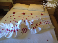 Привет всем! Вот и дошли руки написать о нашем отдыхе 2016! Были в Tropical 14 дней!!! Заселили в супер номер с видом на первый бассейн и на море. Номер 138, 4 этаж! Так как мы молодожены, нам принесли бутылочку вина и фрукты) очень приятно. Приехали 19 мая, а открытие отеля было 18 мая. Мы отдыхали как олигархи: в отеле около 20 туристов, обслуживание класс, места много, с Лука стреляли, в водное поло играли, в Дартс играли, аэробика, теннис. Никто нигде в очереди не стоял) территория красивая! Кормили вкусно, но после 7 дня уже хотелось борща)))) кушали и мясо, и рыбу, овощи, фрукты!!! Сладости супер!!!! С алкоголя был ром, вино, делали самбуку) но мы не любим их алкоголь, пили больше свой с Duty free. На море почти всегда был жёлтый флаг, волны огромные, но купаться реально. Но в конце отдыха все устаканилось, вода тёплая, просто класс!!!! Песочек, море прозрачное, чистейшее. Говорят в море есть плита. Да, она есть, но не мешает совершенно: взрослым можно или обходить её аккуратно, или идти по ней (она вся в песке, главное не удариться об неё сначала) или вообще бомба с пирса в море заходить. Там можно и стоять без проблем, и поплавать. В общем, морем очень довольны!!! Ради него же ехали. . Деткам удобно возле берега купаться. Был один минус: так как мало людей, то вечером скучновато( дискотеки не было, все сидели возле бара и трындели. Если есть желание, то аниматоры возят на дискотеку. Мы там не были, поэтому ничего не расскажу. Брали 3 экскурсии у нашего гида, он делает хорошие скидки. Ездили кататься на квадроциклах, на кораблике Викинг катались и в Хаммам ездили в первый день. Все экскурсии понравились.. Хаммам божественен!!!! Не упустите возможности побаловать себя 3 часика: сначала сауна морская, потом ментоловая, потом посидеть в бассейне, дальше пилинг классный, маска на лицо и массаж. Это все за 25 $ с человека. Дополнительно можно много разных услуг заказывать ещё. Ездили в Аланью своим ходом: маршрутка номер 50. Или 2 $ с человека или 3,5 лиры. В Аланьи очень красиво: ходили на пляж Клеопатры, гуляли по городу. Ещё возили в большой торговый центр. Там есть все: сладости, чай, кофе, одежда, постельное, статуэтки..... В общем если есть деньги, то купить много чего можно интересного. Съездить нужно точно, хотя бы посмотреть. Это бесплатно, гид предлагает. Вот так. Спасибо большое Аленке, Юнусу и Наташе, что развлекали нас как могли. Очень веселые и позитивные аниматоры! Приезжайте в Киев!! Будем рады Вас видеть!!!! Можно писать ещё много много интересного, но думаю и этого хватит, чтобы помочь в выборе отеля и сделать правильный выбор) Спасибо за отдых!!! Если бы была возможность поехать ещё раз в Tropical, не задумываясь поехала бы!!! Уезжала и плакала!!!! Приезжайте и не пожалеете!!