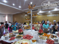 6. Еда. Когда мы приехали еда была хорошая и разнообразная, но после начала поста еда стала хуже, это как раз с 5 июня. И мне все время казалось, что с каждым днем все хуже и хуже. Мяса много, рыба, иногда морепродукты, вкусное варенье и мед на завтрак. Очень вкусная выпечка. нет зелени, помидоры и огурцы еще и поискать надо. Чай и кофе только на завтрак. Даже типа "сок" и то только на завтрак. Почему? не понятно. Пироженку с чаем в обед или на ужин никак. Либо нести с лобби бара чай и кофе. Выносить нельзя с ресторана, за чем тщательно следят. Мороженое на ужин, хотя можно было бы днем где нибудь, даже на 1 час.