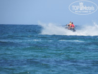2. Пляж. Море супер, вначале было немного прохладное, но не было медуз. Потом море потеплело и появились медузы, заплывать далеко стало страшновато. Песочек очень красивый и приятный. Вначале лежаков хватало всем, затем к 9 часам уже свободных не было, но приносили. Причем быстрее всех помогал парень с надписью security. За динар бегают быстрее. На пляже убираются, ездит полиция. Душ работал всегда.