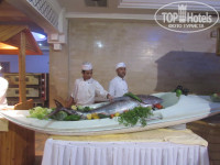 8. Сервис. Вот это главный большой минус отеля. Ваши улыбки, приветливые слова и даже приветствие на арабском тут не особо ценится. Тут только динары. Когда мы по не знанию сели на завтрак сами за стол пустой, а этот стол обычно занимали немцы и официант увидев, что они пришли выдернул скатерть и забрал все со стола. Ушла в шоке. Пришлось прикормить пару официантов чтобы не ходить среди столов с грязной посудой и искать места. Официанты прикормленные динарами встречали, друг сюда. Но тут еще более менее. Вот лобби бар это вообще нечто. Очередь всегда. Не важно что бы ты хотел, воды, колы, пива или спиртное. При этом бармен после каждого заказа, очень зло что то бормочет на своем языке. Но если пришли немцы, вы постойте, а этот бармен с раздачи бежит обслуживать их. Ну неужели нельзя поставить автоматы с кофе и соком? Поставить холодильники с водой. Бармены злые, агрессивные, нерасторопные. И люди, на УЛЬТРАВСЕВКЛЮЧЕНО стоят в очередях, причем за немалые деньги. Мы пили только пиво, и две, три кружки их раздражали. Если хочешь чтобы принесли за стол плати динары. Бар на пляже еще хуже. Мало того грубые и нерасторопные, еще и реально обзываются. Пиво налил по половинке пластикового стаканчика еще и назвал забулдыга. Муж любит пиво, но всегда со стола вернет стакан в бар, очень улыбчив и приветлив. И чтобы так его вывести, надо постараться. Он первый раз написал жалобу управляющему отеля. Отдыхали даже в тройках в турции, но такого не было ни разу. Стаканы на пляже не моют почти. Так слегка ополоснут, а могут и не ополоснуть а взять грязный и налить. Так что следите очень хорошо за этим. Вообщем персонал испортил все отношение об отеле. Вернуться не хочется. Мы целый год копим деньги на море, не для того чтобы о нас вытирали ноги и относились как в быдлу. Хотя ужин организованный для русских, тоже расстроил, выступал представитель отеля, а люди как с голодного края за едой, ну послушайте 5 минут. Грустно.