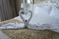 Добрый день всем! Отдыхала с мужем и ребенком 9 лет в июле 2014 года. В Турции уже не первый раз. Всем рекомендую этот отель! У всех членов семьи остались теплые воспоминания об отдыхе. Каждый находил в отеле занятие себе по душе. Очень хочется вернуться в этот отель! Жаль цена пока высоковата для нас. Очень понравилось обслуживание и анимация (детская и взрослая)! В игровой комнате все продумано для очень маленьких деток. Расположение отеля удачное. Мы самостоятельно на автобусе посетили выставку песчаных фигур и океанариум. Уезжать не хотелось! Перед выездом из отеля ребенок написал на песке: "Я люблю тебя, Турция!"
