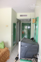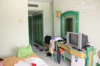 Номер- чистый, сдвоенная кровать и диванчик для ребенка в уголку. Но опять же все требует ремонта и замены- разбитая ванна, простыни и шторы в дарах, полотенца старенькие и все в нитках. Уборка в номере нормальная, пол мыли каждый день.