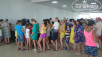 Минусы: столовка (Голубой зал) идиотская начиная от режима работы заканчивая постоянным отсутствием посуды. Из фруктов заметили зеленые не спелые яблоки не больше куриного яйца. Аперитив подают только в обед, поэтому систему питания предложил бы назвать FB+