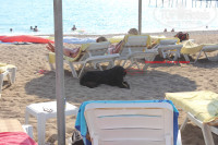 Пляж. Галька, море чистейшее. Вход в море-нужна спецобувь, резкий заходи практически сразу глубина более метра. Свободные лежаки находили всегда.