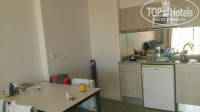 Во всех корпусах есть лифты. Номера состоят из балкона, туалета+ванной и двух комнат: спальня и гостиная. В спальне две кровати (кстати, очень удобные с удобными подушками!!!), маленький комодик, большой шкаф и выход на балкон. В гостиной диван, перед ним столик, две табуретки, комод с кучей ящиков и телевизор; также есть кухонная зона со столом, 4 стульями, электрической плитой, мойкой, микроволновкой, холодильником и опять же кучей ящиков. Из посуды: 4 вилки, 4 ложки (столовые и чайные), 4 ножа, 4 тарелки (глубокие и мелкие), 4 стакана и ковшик (в котором мы кипятили воду, чтобы чай заварить). Из гостиной также можно выйти на балкон, где есть столик, 4 стула и сушилка для вещей! Так что берите прищепки) В ванной комнате сантехника новая, зеркало большое, фен есть и главное не душевая кабинка, а именно ванна! В спальне в шкафу стоит сейф, платный, мы им не пользовались. Ничего не пропало, хотя ценные вещи оставляли даже вне чемодана, заряжаться. Кстати о заряжаться. Ключ от номера - это карточка, которую потом надо вставить в специальную нишу, чтобы пошло электричество в комнаты. Мы попросили вторую карточку (с подругой вдвоём были), и когда уходили на пляж или погулять, оставляли вторую карточку в этой нише и спокойно заряжали телефоны и фотоаппараты. Уборка была вполне хорошая, горничная всегда почему-то оставляла нам больше полотенец, чем было при заселении. Мы же ей по евроцентику на кровати оставляли каждый день.