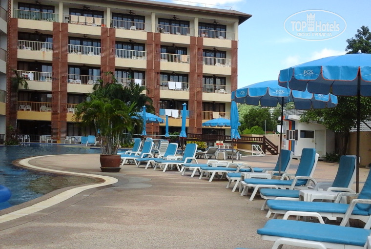 Прилетели поздно вечером, до отеля ехали около часа. Заселили сразу. Один минус - деньги на ресепшене не меняют, обменники уже были закрыты, покормить детей после такой затянувшейся дороги возможности не было. Попили чай в номере с привезенными с собой печенюхами. Отель небольшой, но очень уютный, персонал доброжелательный. Номер был в 6 корпусе, большой, разделенный перегородкой на 2 комнаты. В каждой кондиционер, правда почистить бы их не мешало, а то скоро мхом покроются. Большой балкон со столом и стульями, есть сушилка для белья. Огромные кровати! Белоснежное белье. Дыр и пятен не наблюдали. Пляжные полотенца есть поновее - синие и желтые, более старые, тут как повезет. Мебель и сантехника не новые, но все работало исправно. Вода в душе уходила хорошо. Уборка, как уже много писали, не самое сильное месть у этого отеля, но нас, в принципе, все устраивало - белье и полотенца меняли в нужном количестве, воду, чай-кофе, гели-мыло-шампуни пополняли регулярно, мусор выносили, пол подметали и даже мыли временами. Бассейны чистят, мусор убирают, территория самого отеля чистая. Шезлонги свободеые всегда были. Завтраки обычные для Таиланда, нам вполне хватало всего. Из фруктов были арбузы, дыни, папа и иногда ананас. Очередей не было, столики свободные естЬ всегда. Брали как-то там на обед курицу с картошкой фри. Порция большая, вкусно и по цене очень приемлемо.