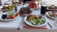 Бар на пляже безалкогольный и без еды, так что если после купания одолевает голод, запасайтесь едой заранее. Так кстати многие и делали, брав булочки с завтрака).