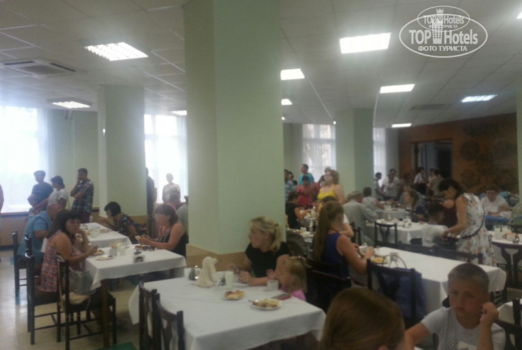 СТОЛОВАЯ. Организовано плохо! Очереди от самых дверей, подносов нет, носишь все сам, что успеешь взять; самое вкусное заканчивается в первые 15 минут, иной раз салаты- это все то, что не доели вчера с макаронами, с рисом и пр., из фруктов -это яблоки и апельсины)))))в этой суете дети были не раз облиты кипятком, готовят вкусно, разнообразно, персонал столовой очень вежливые люди, настоящие подвижники, потому что все недовольство выливается на них, в котором виновато руководство санатория!!!