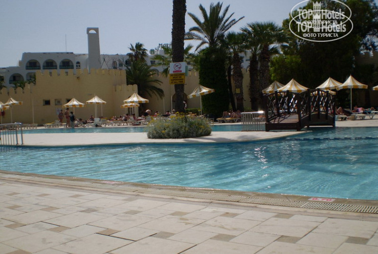 Вылетали с Домодедово 14.05.-21.05.2009 в 9.30 (рейс без задержек)-перевозчик трансаэро, летели от Капитал-тур (стоимость путёвки обошлась в 24тыс. за двоих!!!! - купили по горящей за 3 дня до вылета). Приземлились в г. Монастир, контроль прошли быстро, визы-нет, нужно только миграционные карты заполнить! Так что возьмите ручку с собой. С Монастира до Сусс ехали минут 40. Вот Размещение было уже дольше, очень много было немцев прибыло в этот день, и весь персонал бегал перед ними. (в отеле тоже пришлось заполнить карты!) Наконец-то заветные ключики нам подали!!!!!!!!!!!! И вот разочарованье-номер! Вид с балкона был на соседний отель, точнее на стену, пальмы и местного охранялы, который вечно шарился перед балконами. И ВСЁ! нужно было постараться, чтоб увидеть море. Я, вооружившись 15$ (больше давать не собиралась) пришла на ресепшин, попыталась объяснит этим «почти понимающим людям» что хочу поменять номер, на что мне было сказано - номеров нет. (кстати мы жили на 3 этаже номер № 2119) (у них вместо первого этажа идёт нулевой), хотя для фашистов-номера меняли быстро!!!! Девушка на ресепшене (напоминает помесь тайки с арабкой)-просто отвратительная натура, постоянно брешет!!! И пытается при этом улыбаться, выставляя вас полными придурками, и самое интересное, что когда вам нужно что-то, то она типа нифига не понимает, но как-только дела коснулись денег, тут же всё понимала с полуслова. Тут же на ресепшене мы встретили нашу соотечественницу, которая отдыхала тут уже как дней 5 и которую, по её словам и синякам - избил муж, ну да ладно,,,,,,, короче она хотела поменять из-за него номер, сказав что у неё вид - замечательный! Мы пришли и посмотрев + ещё на несколько номеров, пришли к выводу, что у нас оказался один из самых лучших стандартных номеров, мы тут же передумали его менять. В день прилета погода - разочаровала.- был сильный ветер и дождь (что не характерно уже для мая) на второй день всё стало зашибись!!! Дело сделал вискарь, купленный в дьютики, + палаящее солнце и чистейшее море. Кратко об отеле: Вода в номере в душе была всегда, полотенца меняли, пару раз не дали туалетных принадлежностей, раз сказали-всё тут же принесли. Сама уборка-ваще никакая. Разве что полотенца только складывали. После первой уборки, их чаевые на этом закончились! сам отель старый, территория отеля действительно очень зеленая и чистая!!! за ней следят, с утра наблюдали за завтраком картину: намывали дорожки мыльным раствором! На территории ведется стройка SPA салона, но она находится сбоку, но не далеко от бассейна. Нас она никак не напрягала, т.к мы всего пару раз загарали у бассейна. в основном на пляже. О пляже: Порадовал!! Особенно после увиденных, когда идешь вдоль побережья! Пляж чистый с белоснежным песком!!!, каждое утро убирают водоросли, если таковы есть, + ровняют граблями песок, все шезлонги собраны и расставлены. По утрам их нужно занимать!!! Лучше делать это до завтрака! Иначе лишитесь самых замечательных и коронных мест! Для немок бегает спасатель и приносит им за динары шезлонги, а русские сами тащят. (благо у меня есть самый замечательный на свете муж!!!) Кстати курс такой: 1динар=24руб. ЕДА: У нас был полупансион, Кормят вполне сносно, если вы не привереда. Правда есть очередь за рыбой (которую я обожаю). Вы приходите к открытию, и у вас в тарелке будет всё, что захотите. Я вот например клубникой объедала