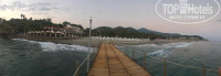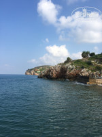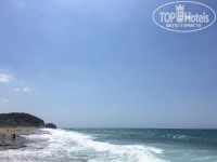 ПЛЯЖ: Было б приятней если б вместо зонтиков, были навесы, так как когда дул ветер, зонтики сдувало) Вход в море, с одной стороны плита, впрочем там никто не заходит, а с другой стороны был песочек, зайти не сложно. Единственное, сугубо мое личное мнение, с маленькими детками , не советовала б туда ездить, так как фактически каждый день были волны, пару дней совсем не купались, волны были слишком большие.